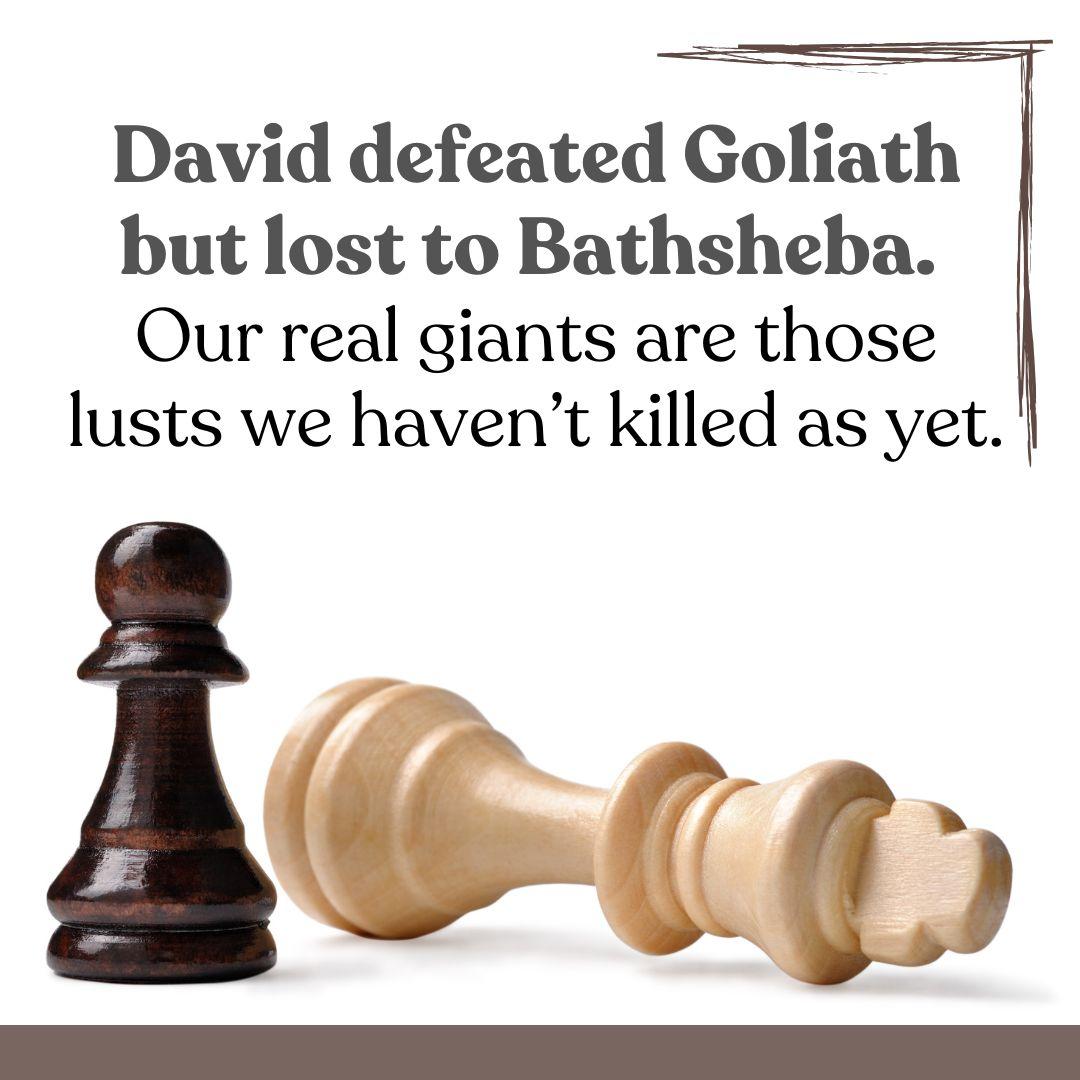 David defeated Goliath but lost to Bathsheba – our real giants are those lusts we haven’t killed as yet!