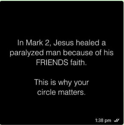 In Mark 2, Jesus healed a paralyzed man because of his FRIENDS faith – that is why your circle (and who are your friends) matters!