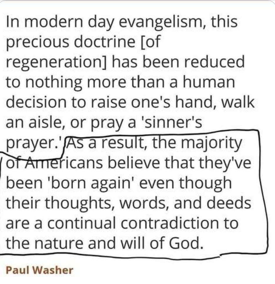 In modern day evangelism, this precious doctrine of regeneration has been reduced to nothing more than a human decision to raise one’s hand, walk an aisle, or pray a sinners prayer ……