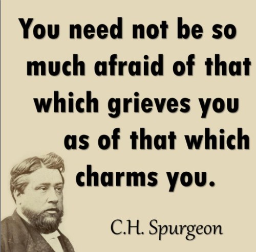 You need not be so much afraid of that which grieves you as of that which charms you – Charles Spurgeon